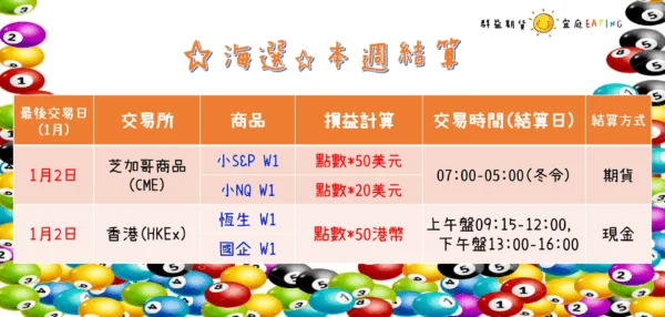 🔖每周海選結算表